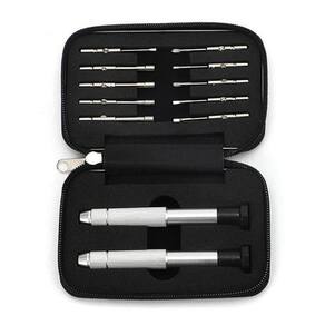 As ponteiras, feitas em aço de alta velocidade, são ideais para diferentes tipos de parafusos. O kit inclui ponteiras hexagonais nos tamanhos 2.0, 2.3, 2.5 e TN8, chaves de fenda Phillips nos tamanhos 1.5, 1.7 e 2.0, e chaves de fenda nos tamanhos 1.5, 1.7 e 2.0.