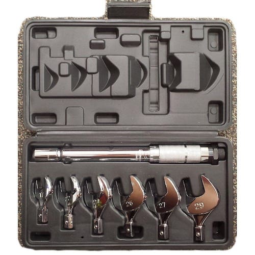 com esse conjunto de chaves torquímetros, você poderá ajustar precisamente o torque de um parafuso em uma porca.