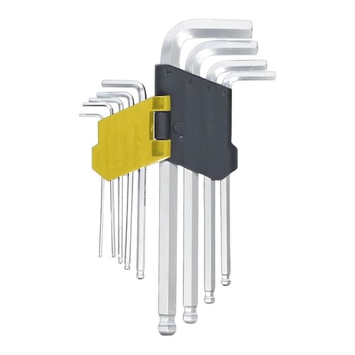 Kit Chaves Hexagonais com Ponta Esférica - 9 Peças O Kit de Chaves Hexagonais é o aliado ideal para quem busca eficiência e praticidade em tarefas mecânicas e de manutenção. Composto por 9 peças de tamanhos variados 1,5 mm a 10 mm , esse conjunto oferece versatilidade e precisão para apertar ou soltar parafusos com encaixe sextavado. Com design em L e extremidade esférica tipo bola , facilita o acesso em ângulos difíceis e áreas estreitas, garantindo maior comodidade durante o uso. Produzido em aço forjado de alta resistência e dureza HRC 50, proporciona durabilidade e desempenho superior. Conteúdo: 9 chaves Allen com ponta esférica Embalagem: Blister com suporte organizador Medidas: 1,5 / 2 / 2,5 / 3 / 4 / 5 / 6 / 8 / 10 mm Material: Aço forjado Dureza: HRC 50 - Ideal para manutenção de bicicletas, automóveis, montagem de móveis e . - Manter fora do alcance de crianças. - Utilizar com equipamentos de proteção óculos em ambiente de trabalho. Ferramenta prática, segura e resistente. Perfeita para ter sempre à mão Marca: Não Informado Ean: 7898513849802