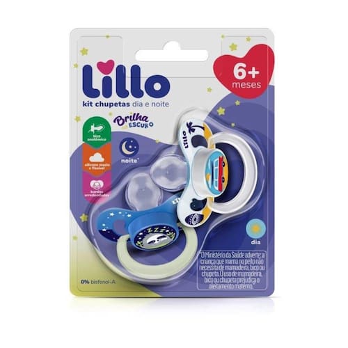 Kit Chupeta Lillo Dia e Noite Tamanho 2 Silicone 6+ Meses Menino 2 Unidades
