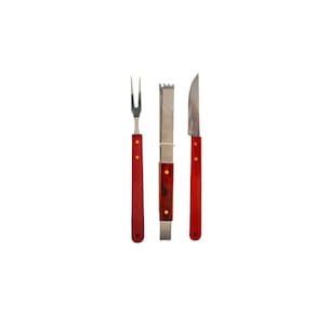 Kit de churrasco 3 peças faca, garfo e pegador com lâmina em inox. - ad