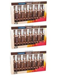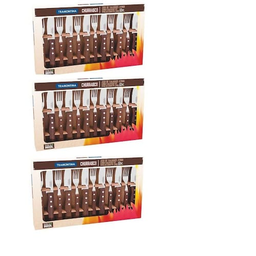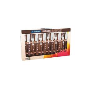 Kit Churrasco 36 Peças Jumbo Tramontina Garfo Faca 22299/059 Conteúdo: 18 - Facas para churrasco Jumbo 5 18 - Garfos Jumbo Descrição: O churrasqueiro é sempre o último a sentar à mesa. Mas para garantir que os convidados também tratem o assado com respeito, nada melhor do que escolher os talheres certos para isso. A linha Churrasco da Tramontina tem cabos de madeira, que resistem ao tempo e à umidade, e lâminas em aço inox para garantir o corte perfeito das carnes. Lâminas de aço inox. Cabos de madeira natural. Rebites de alumínio. Antes da primeira utilização, lave bem as peças e seque-as. Tenha cuidado ao manusear produtos cortantes e perfurantes e mantenha-os fora do alcance de crianças. Para maior durabilidade dos produtos, recomenda-se secar bem antes de guardar. Para descarte dos produtos e embalagens siga as orientações de reciclagem vigentes. EAN13: 7898673650249 DUN14: 17891112214900 NCM: 8215.20.00 Peso Líquido: 0,8800 kg. Peso Bruto: 1,1450 kg. Metragem: 0,004806 m Dimensões Embalagem Compr. X Larg. X Alt. : 445x 270x 40 mm. Dimensões Produto Compr. X Larg. X Alt. : 445x 270x 40
