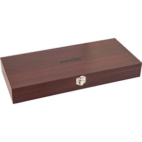 Utensílios em aço inox, proporcionando maior resistência e durabilidade. Conta ainda com cabo de madeira longo, garantindo um manuseio mais seguro contra altas temperaturas.