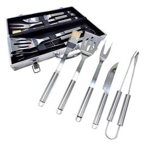 Kit Churrasco 5 Peças Inox Maleta Alumínio ChurrasqueiraKit Churrasco 5 peças em Aço Inox com Maleta em Alumínio. Faça um churrasco espetacular com nosso Kit para Churrasqueiro.Prepare seu churrasco com muito mais praticidade, estilo e profissionalismo com esse Kit para Churrasco com 5 Peças em Aço Inox.O Kit acompanha uma Maleta em Alumínio com forro interno em tecido para o armazenamento ideal e cuidadoso das suas peças.Além disso, a Maleta facilita a locomoção das peças, pois é leve e possui presilhas que mantém os itens imóveis dentro dela.Ao total, são 5 peças produzidas em Aço Inox, material resistente e duradouro, com formato que facilita o manuseio e evitam ações derrapantes.Com este Kit é possível ter todo o material necessário para fazer o seu churrasco onde você quiser, além de ser um ótimo item para presentear quanto para uso próprio. Use o que á de melhor para fazer churrasco.Conteúdo da Embalagem:1 Faca1 Garfo1 Pegador1 Pincel1 Espátula1 Maleta em AlumínioDimensões da Faca:Comprimento: 27 cmLargura (Da Lâmina): 3 cmLargura do Cabo: 2 cmDimensões do Garfo:Comprimento: 34 cmLargura (Do topo do Garfo): 3,5 cmLargura do Cabo: 2 cmDimensões do Pegador:Comprimento: 34 cmLargura (Do topo do Pegador): 4 cmLargura do Cabo: 2 cmDimensões do Pincel:Comprimento: 33 cmLargura (Do topo do Pincel): 3,5 cmLargura do Cabo: 2 cm Dimensões da Espátula:Comprimento: 35 cmLargura (Do topo da Espátula): 7,5 cmLargura do Cabo: 2 cmDimensões da Maleta (Fechada):Altura: 13 cmLargura: 7 cmComprimento: 37 cmDimensões da Maleta (Aberta):Altura: 3,5 cmLargura: 27 cmComprimento: 37 cm 3 Meses de Garantia Contra Defeito de Fabricação1167KG Mod: CA12220