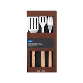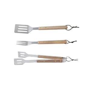 Kit Churrasco com 03 Peças em Inox: Espátula, Garfo, Pegador de Madeira Brinox - Tornando o preparo do churrasco mais fácil e prazeroso