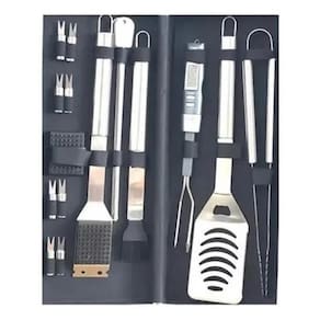 Kit churrasco com termômetro digital grill fork Kit churrasco c/termômetro digital grill fork para carne Kit churrasco 21 peças + Termômetro de carne, com lcd disply digital termômetro grill fork, para churrasco de carne Recursos: Sonda de aço inoxidável 304: com medição precisa de temperatura, resposta rápida, alta estabilidade, pode medir rapidamente a temperatura quente e fria. Celsius / fahrenheit switch para suas diferentes necessidades. Configurações de temperatura predefinidas, todas as temps predefinidas podem ser definidas de acordo com seus gostos desejados. Desligar automaticamente após 10 minutos quando não estiver em uso, o que reduzirá o consumo de energia. Visor lcd. Os algarismos arábicos são grandes o suficiente para serem lidos na tela lcd com clareza. Especial para carne: meça profissionalmente a temperatura da carne, escolha o sabor de acordo com sua preferência Alarme sonoro: quando a temperatura dentro da carne atingir a temperatura predefinida, ele fará um som para lembrá-lo, e você nunca ficará angustiado com memória fraca ou esquecimento repentino. Especificação: Material: aço inoxidável + plástico a tamanho: aproximadamente 35 4 2,5 cm / 13,78 1,57 0,98 pol. Bateria: 2 pilhas aaa não incluídas Lista de pacotes: 1 termômetro grill'. : 90 dias.