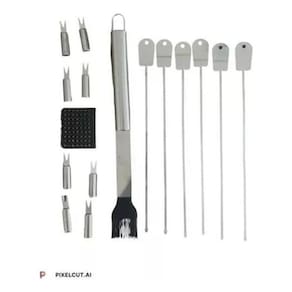 Kit churrasco com termômetro digital grill fork Kit churrasco c/termômetro digital grill fork para carne Kit churrasco 21 peças + Termômetro de carne, com lcd disply digital termômetro grill fork, para churrasco de carne Recursos: Sonda de aço inoxidável 304: com medição precisa de temperatura, resposta rápida, alta estabilidade, pode medir rapidamente a temperatura quente e fria. Celsius / fahrenheit switch para suas diferentes necessidades. Configurações de temperatura predefinidas, todas as temps predefinidas podem ser definidas de acordo com seus gostos desejados. Desligar automaticamente após 10 minutos quando não estiver em uso, o que reduzirá o consumo de energia. Visor lcd. Os algarismos arábicos são grandes o suficiente para serem lidos na tela lcd com clareza. Especial para carne: meça profissionalmente a temperatura da carne, escolha o sabor de acordo com sua preferência Alarme sonoro: quando a temperatura dentro da carne atingir a temperatura predefinida, ele fará um som para lembrá-lo, e você nunca ficará angustiado com memória fraca ou esquecimento repentino. Especificação: Material: aço inoxidável + plástico a tamanho: aproximadamente 35 4 2,5 cm / 13,78 1,57 0,98 pol. Bateria: 2 pilhas aaa não incluídas Lista de pacotes: 1 termômetro grill'. : 90 dias. Marca: Não Informado Ean: 704260206812