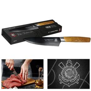 Kit Churrasco Corinthinas Tabua +Faca de Carne Oficial Presente Kit Corinthians: Faca de Aço Inox com Cabo de Madeira e Logo Gravado a Laser + Tabua de churrasco corinthians.