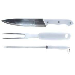 O cuidado com as facas é essencial, elas devem estar sempre afiadas para facilitar o corte do churrasco, facilitando na hora de servir seus convidados. Ele acompanha uma faca, um garfo e uma chaira produzidos em aço inoxidável, que confere durabilidade e resistência às lâminas, e cabos brancos em polipropileno que facilitam a higiene e dão firmeza durante o manuseio. Indispensável para a hora de servir um delicioso churrasco, esse kit é perfeito para os churrasqueiros mais requintados até os assadores de fim de semana.
