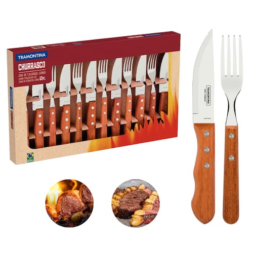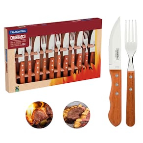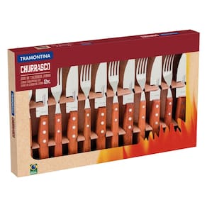 Jogo para Churrasco Tramontina Dynamic com Lâminas em Aço Inox e Cabos de Madeira Natural 12 Peças