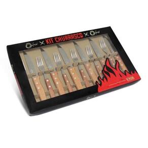 Esse conjunto Oxford é ideal para o seu churrasco Peças robustas, bem acabadas com lâminas em aço inox e cabos de madeira fixados por rebites de alumínio.Conjunto talheres para churrasco braseiro 14 peçasCONTÉM:- 6 facas- 6 Garfos- 1 Faca para Carne 33,5cm- 1 Garfo Trinchante 33cm- Medidas facas: 24,5cm x 2,5cm x 1,5 cm- Medidas garfos: 22,5cm x 2,5cm x 1,4cm- Material: Inox/MadeiraCaracterísticas:- Facas: lâminas com maior durabilidade do fio devido ao tratamento térmico.- Garfos: a espessura do aço e a estampagem das lâminas garantem maior resistência aos produtos, evitando deformações.- Cabos de madeira com tratamento especial, oferecendo maior durabilidade às peças.- Resistentes a impactos e a altas temperaturas.- Podem ir à máquina de lavar louças.- Permanecem bonitos por muito mais tempo.