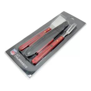 Esse kit é composto por um pegador, um garfo e uma espátula, todos com o logotipo da NFL grafado nas peças através de impressão a laser na cor preta. Isso garante uma excelente qualidade final, com um acabamento impecável que vai impressionar a todos.
