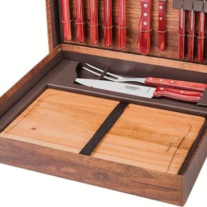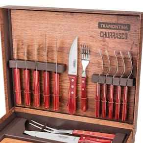 O Kit para Churrasco Tramontina com Lâminas em Aço Inox e Cabos em Madeira Polywood Vermelho com Caixa de Papelão 15 Peças é perfeito para deixar seu churrasco mais prático e funcional. Os cabos em madeira tratada Polywood, são altamente resistentes à impactos e altas temperaturas, garantindo maior durabilidade.