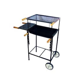 Regule a altura da grelha para assim controlar a temperatura do tradicional churrasco a carvão, sem deixar queimar a carne, grelha estranhado, tabuleiro e pedra conjugada para preparar a carne a ser servida.
