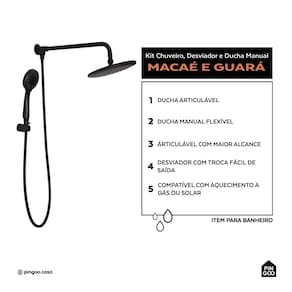 O Kit Ducha Macaé com Desviador Mundaú e Ducha Manual Guará Pingoo.casa é uma solução completa para um banho prático, moderno e elegante.
