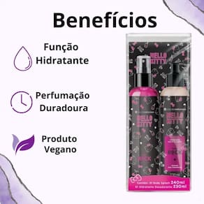 O Kit Cia da Natureza Hello Kitty Pink Rock é a combinação perfeita para quem busca um toque de frescor e hidratação duradoura. Inspirado na adorável Hello Kitty, este conjunto exclusivo da CIA DA NATUREZA oferece uma experiência aromática envolvente, ideal para mulheres que desejam exalar uma essência leve e alegre em seu dia a dia. Composto por um Body Splash 240ml e uma Loção Hidratante 230ml, este kit proporciona cuidado completo e uma perfumação que encanta os sentidos.