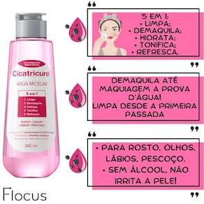 Kit Cicatricure Água Micelar Gel Creme Facial Antissinais Bem vindo a a loja Flocus. É um prazer tê-lo a como nosso a cliente CONTEÚDO: 1 Creme Facial Antissinais Cicatricure - 50G 1 Água Micelar 5 em 1 Cicatricure - 380ml Cicatricure é especialista no cuidado com a pele. Uma marca parceira, com soluções eficazes e acessíveis pensadas especialmente para todos aqueles que querem cuidar da pele. Sua exclusiva fórmula com Bio-Regenext ajuda a recuperar a elasticidade e a firmeza da pele, reduzindo visivelmente as rugas e linhas de expressão. O Creme Facial Cicatricure Antissinais possui a tecnologia Bio-Regenext que transmite informações de uma célula para outra, promove a regeneração natural e repara os danos na pele proporcionando aparência mais jovem. Cicatricure Água Micelar enriquecida com Água de Rosas. Contém micelas que, com uma única passada, atuam como ímãs para capturar a sujeira, a maquiagem e a oleosidade da pele. 5 benefícios em 1 só produto: Limpa desde a primeira passada; Demaquila até a maquiagem à prova d'água; Hidrata; Tonifica; Refresca. Além disso, é livre de álcool e não irrita a pele. INDICAÇÃO: Todos os tipos de pele. BENEFÍCIOS: REDUZ RUGAS possui a tecnologia Bio-Regenext, que recupera o envelhecimento da pele de 2 anos em 2 meses e reduz as rugas profundas; MAIS FIRMEZA reafirma a pele, com resultados a partir da 1 aplicação. MODO DE USO: 1 Passo: Água Micelar: Aplique com um algodão sobre o rosto, pálpebras, lábios e pescoço Não há necessidade de enxaguar. Utilize pela manhã e à noite. 2 Passo: Creme Facial: Aplique pela manhã e à noite no rosto, pescoço e colo sobre a pele limpa e seca. Faça movimentos de baixo para cima até completa absorção. Agradecemos por escolher a Loja Flocus e por confiar em nós para cuidar da beleza dos seus cabelos. Em caso de dúvidas, favor enviar sua pergunta Flocus Marca: Não Informado