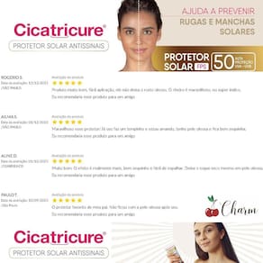 O novo cicatricure protetor solar antissinais fps 50 de uso diário com ácido hialurônico e pró-colágeno protege a pele do sol, ajudando a prevenir os sinais visíveis do foto-envelhecimento como rugas, linhas de expressão e manchas solares. Com partículas absorvedoras de oleosidade, confere toque seco e matifica a pele instantaneamente.