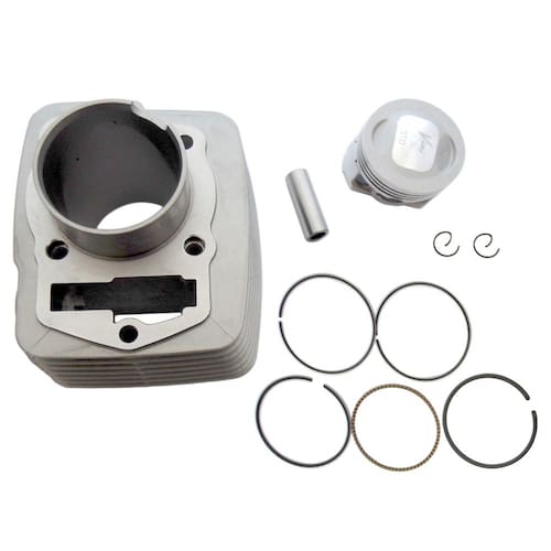 Kit cilindro, pistão, pino, travas e anéis para as seguintes motos: - Kasinski 150cc todos os anos, - Kasinski CRZ 150cc Refrigerada a ar a partir de 2012, - Flash MV Action 150cc a partir de 2012, - Flash MV city 150 a partir de 2012, Tratamento do material: Nos adotamos o envelhecimento artificial do material para poder aliviar stress e garantir a precisão do produto. Qualidade do furo do cilindro: De acordo com o principio de funcionamento do moto, nos usinamos o diametro superior da camisa do cilindro 0,005mm menor que o diametro inferior, quando o motor esta em funcionamento por causa da expansão termica, a parede da camisa do cilindro ficara em linha paralela Por essa razão podemos garantir a compressão do ar no cilindro, no intuito de fazer com que o motor tenha um otimo desempenho em força. Precisão da unisagem: Circularidade do furo do cilindro: 0,005mm Paralelismo da superficie: 0,03mm Precisão coordenada da localização do furo do pino: 0,05mm. codigo part number : 9020840044