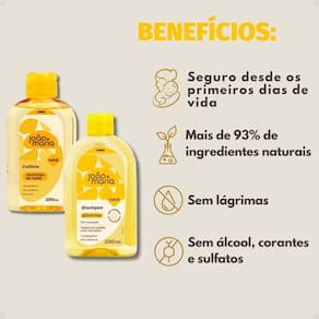 O Kit contém: - 1 Shampoo João e Maria 200ml - 1 Colônia João e Maria 200ml