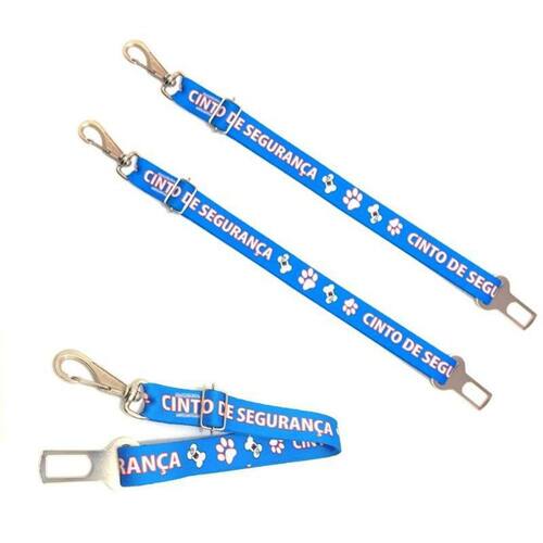 Kit contem 2 cintos de segurança na cor azul para cães e gatos. Confeccionado em fita de nylon 25 mm de diâmetro na cor preta altamente resistente; Reguladores em nylon para segurança do seu pet; Mosquetão com trava de segurança. Tamanho único. Medidas aproximada: 35 cm à 62 cm de comprimento. A guia de Segurança é um acessório indispensável para levar seu bichinho de estimação no carro com segurança e cumprindo as regras de transito. Muitas vezes não se tem uma real consciência do perigo que pode resultar um cão ou gato solto numa batida; não só o animalzinho poderia machucarse seriamente ou sair voando por uma janela, mas também se tornar um objeto que pode bater e causar graves ferimentos nos passageiros. Se o animal andar solto dentro do carro o motorista pode ser multado pelo artigo 169 do CTB, que prevê notificação e três pontos. Marca: Não Informado