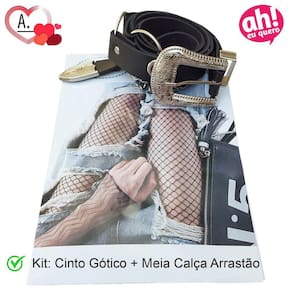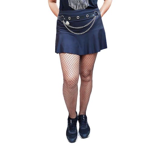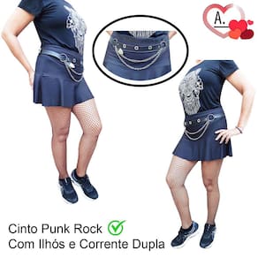 Kit Cinto Feminino Punk Rock com Ilhós e Corrente Dupla + Meia Calça Arrastão.