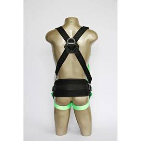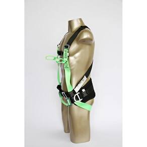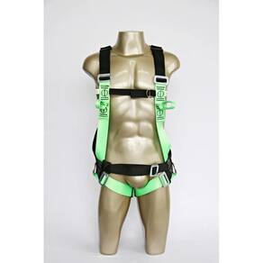 O cinturão de segurança tipo paraquedista/abdominal, confeccionado em fita primária de poliéster de 45 mm e fita secundária de poliéster de 25 mm. Possui 4 pontos de engate, sendo 1 duplo peitoral em poliéster, 1 meia argola dorsal em aço e 2 meia argola laterais de aço para posicionamento. Dotado de 5 fivelas em aço sem pino para regulagem nas pernas, cintura e suspensório.