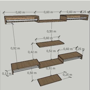 Prateleira central: 60 cm (largura) x 25 cm (profundidade);