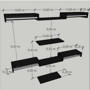 Prateleira central: 60 cm (largura) x 25 cm (profundidade);