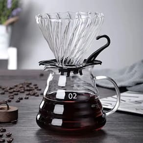 O coador em vidro resistente ao calor traz linhas espirais internas que garantem extração uniforme, resultando em um café mais aromático e encorpado.