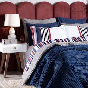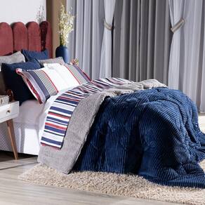 Kit Coberdrom Canelado Versalhes Azul Marinho King 03 Peças - Dupla Face Manta E Sherpa Colorida