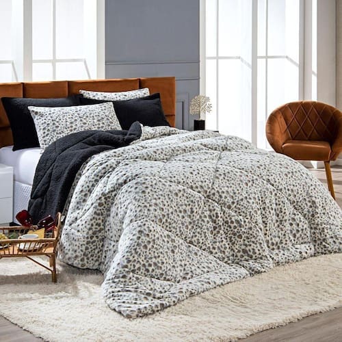 Kit Coberdrom Nevada Estampado Onça Preto Casal Padrão 03 Peças - Dupla Face Manta E Sherpa Colorida A nova coleção de coberdrons Nevada traz toda a sofisticação e aconchego. Por possuírem dupla face, apresentam superfície que valoriza ainda mais as cores das estampas e também as cores da sherpa colorida, que é a novidade e a tendência do inverno desse ano! Confeccionado em pantográfica computadorizada com lindos desenhos geométricos. Composto de Manta Plush Fleece Aveludado em poliéster com 150gr de enchimento, sofisticado e extremamente macio, perfeito para aquecer, acompanhando também os dois porta-travesseiros estampados com Zíper. Ideal para decorar, trazer conforto e tornar o quarto ainda mais convidativo e elegante! Confira! Contém:01 Coberdrom Casal Padrão 2,35m x 2,15m02 Porta Travesseiros Estampados 70cm x 50cm OBS: Demais itens da foto são vendidos separadamente. Composição:Manta Plush Fleece: 100% PoliésterSherpa Colorido: 100% PoliésterEnchimento: 100% Poliéster Instruções de Uso e Lavagem:Vide etiqueta do produto. Atenção:Foto meramente ilustrativa.Variação das cores podem ocorrer de acordo com o monitor. Ean: 7892149102089