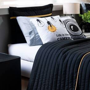 Kit Cobre Leito 4 Peças Solteiro Inove 100% Poliéster - Selfie Preto/mostarda