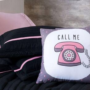 Kit Cobre Leito 5 Peças Queen Inove 100% Poliéster - Call Me Preto/rosa Kit Cama Queen Inove 05 Peças Hipercal 200 Fios Dupla Face Inove na decoração do quarto com um kit completo e cheio de estilo! O Kit Inove foi criado para quem busca um visual moderno e divertido, combinando um cobre leito dupla face com almofadas temáticas para uma cama posta cheia de personalidade.