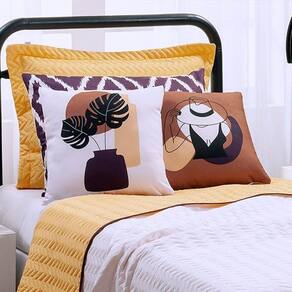 Kit Completo e Coordenado: Com 5 peças inclusas, este kit oferece uma solução completa para decorar, incluindo cobre leito , porta travesseiro , fronha e duas capas de almofada.