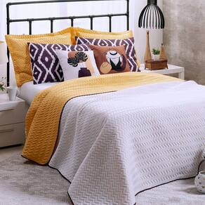 Kit Completo e Coordenado: Com 7 peças inclusas, este kit oferece uma solução completa para decorar, incluindo cobre leito, porta travesseiros, fronhas e duas capas de almofada.