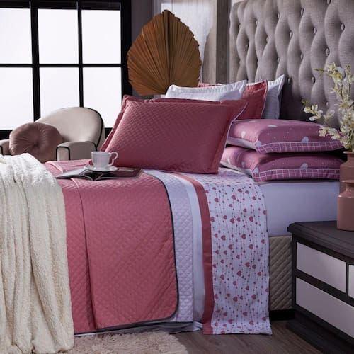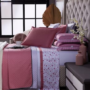 Confeccionado em tecido Microfibra 100% poliéster, a nova Coleção Afrodite vem trazendo um toque macio, com portas em acabamento debrum, o cobre leito com enchimento em manta dupla face, permitindo o uso dos dois lados (Rosê e Branco) com lindos detalhes nos porta-travesseiros e na vira de lençol estampada em corações, tudo para combinar com a sua decoração! Produzido num rigoroso controle de qualidade, dando um toque de requinte para o ambiente. Confira!