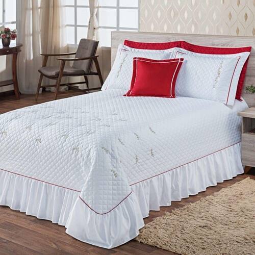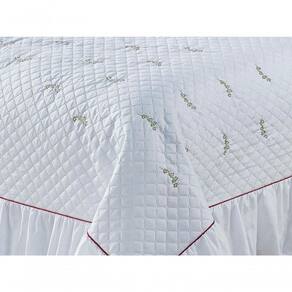 O Kit Cobre Leito Inovare possui lindos detalhes bordados com ramos, detalhe em viés, acompanha porta travesseiros e almofada com refil.