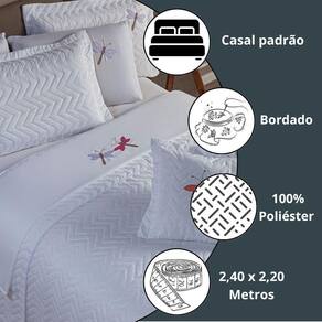 Kit Cobre Leito Casal Padrão 3Pçs Bordado Libélula Toque Artesanal Variação: Branco Olá Seja muito bem-vindo à Atual Ecommerce, onde estilo, aconchego e qualidade se encontram. Apresentamos o Kit 3 Pçs Cobre Leito Casal Libélula Bordado. Imagine transformar seu quarto em um ambiente acolhedor, romântico e elegante com um simples toque de bom gosto. Se você busca sofisticação sem abrir mão da praticidade, este kit é a escolha perfeita. O bordado delicado de libélulas, o matelado em zig-zag e o acabamento com debrum trazem um visual único que encanta à primeira vista. É mais bonito do que nas fotos O bordado é perfeito. - Simone, SP comprei para presentear minha mãe, e ela ficou emocionada - Eduardo, MG O tecido é leve, macio e muito elegante. Vale cada centavo. - Janaína, PR Especificações Técnicas: 01 Cobre Leito Casal Padrão: 2,40m x 2,20m 02 Porta Travesseiros com Debrum: 70cm x 50cm Tecido Superior: 100% Poliéster Forro: 100% Polipropileno Manta: 100% Poliéster Acabamento: Debrum, viés e matelado zig-zag Lavável à máquina modo delicado : 3 meses contra defeitos de fabricação - mais segurança na sua compra Agradecemos sua visita e boas compras Marca: Não Informado Ean: 7897609180645