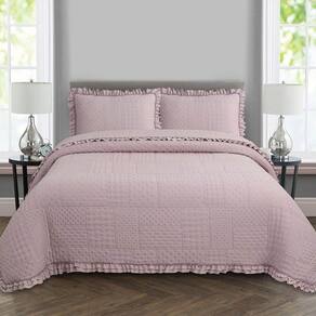 Kit Cobre Leito Colcha Allegra Casal 3 Peças Percal 300 Fios C/ Babado - Rose - 100% Poliéster