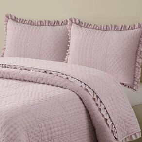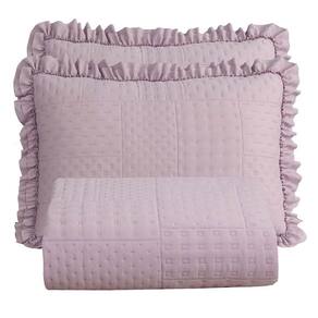 Kit Cobre Leito Colcha Allegra Casal 3 Peças Percal 300 Fios C- Babado Rose 100% Poliéster - Rosa