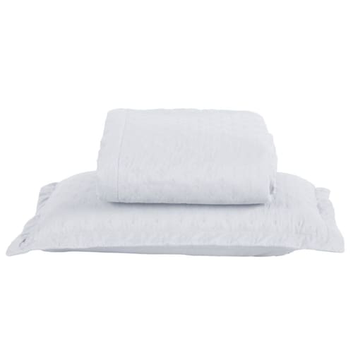 - O porta travesseiro mede 70cm x 50cm e possui aba americana;