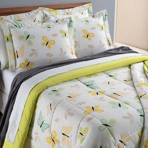 A delicada estampa de borboletas traz um ar romântico e leve ao ambiente, combinando perfeitamente com diferentes estilos de decoração. Além disso, o acabamento refinado e o matelado dão um toque especial ao conjunto, garantindo uma composição elegante e harmoniosa para o seu quarto.