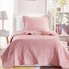 Kit Cobre Leito Colcha Bouti Solteiro Infantil 2 Peças Rosa 100% Poliéster