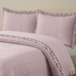 Seu design acolchoado matelado em padrão geométrico transmite sofisticação, enquanto os babados delicados nas bordas adicionam um toque clássico e romântico ao visual da sua cama. Além de decorar, o cobre leito é resistente, fácil de lavar e de secagem rápida, garantindo praticidade para o dia a dia.