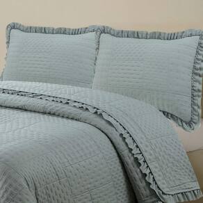 Seu design acolchoado matelado em padrão geométrico transmite sofisticação, enquanto os babados delicados nas bordas adicionam um toque clássico e romântico ao visual da sua cama. Além de decorar, o cobre leito é resistente, fácil de lavar e de secagem rápida, garantindo praticidade para o dia a dia.