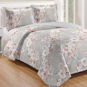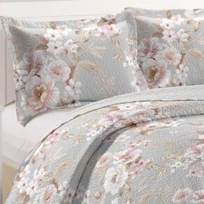 Kit Cobre Leito Colcha Casa Scarpa Mix Queen Estampado Dupla Face Floral 3 Peças - Marcela - Única