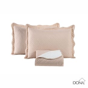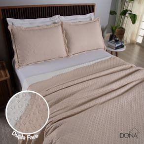 Kit Cobre Leito Colcha Casal Dupla Face Madrid 3 Peças - BEGE