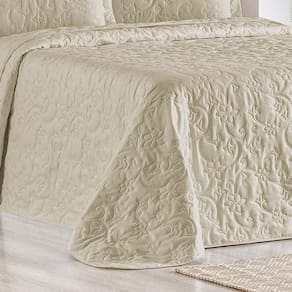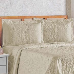 Kit Cobre Leito Colcha Celeste Queen 3 Peças Matelado Floral 180 Fios - Cáqui