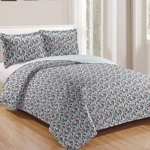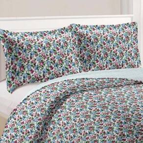 Kit Cobre Leito Colcha Daily King 3 Peças Dupla Face Estampado - Floral 21 - 100% Poliéster